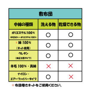 敷布団は素材によってそのまま洗える物と